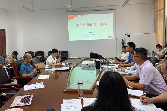 7月7日上午,我院在豁然楼A315会议室组织开展“习近平新时代中国特色社会主义思想”主题教育理论学习。本次会议由学院院长陶道强教授以《担负起新的文化使命》为主题展开。