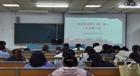 从10月12日起至今,本期“党史研读班”已举办5次教学活动。王皓老师为同学们讲授《中国共产党早期统一战线史》,引导学生深入了解中国共产党统一战线史;谢艳老师讲授题为《从“一大”代表的迥异人生中感悟信仰的力量》的党课,让学生从中国共产党一大代表的不同经历,感悟信仰对于人生道路的重要性;夏洋老师为学生讲授《枣庄红色英雄朱道南》,引领学生追念革命前辈,传承革命薪火;宋丽惠老师讲授《共和国这样走来》,带领学生重温建国大业;程诚老师领读《习近平的七年知青岁月》,鼓励学生志存高远,脚踏实地,努力奋斗。