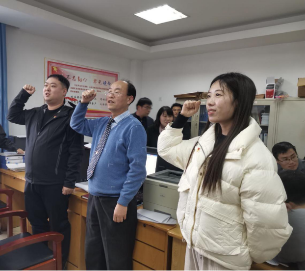 最后,党总支书记郭勇、党总支副书记汪涛对新发展的党员以及新转正的同志表示祝贺,希望同志们谨记自己的责任,始终牢记自己是一名共产党员,严格规范和约束自己,认真履行党员义务。新发展的党员同志以及新转正的党员同志表示以后在工作、生活中处处以党员标准严格要求自己,发挥模范带头作用,不忘初心,为党的事业奋斗终身。