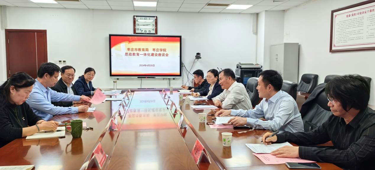 为深入推进枣庄市大中小学思政课一体化协同创新发展,学校教务处处长张立华带领永利yl23455党政人员一行5人,于4月26日赴枣庄市教育局对大中小学思政课一体化建设工作进行座谈,市教育局党组书记、局长王光明等参加座谈会。座谈会由市教育局党组成员、副局长朱卫主持。