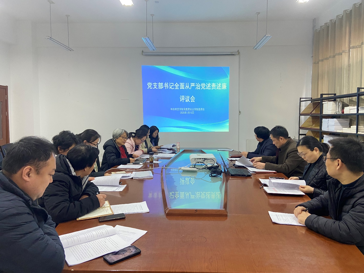 根据校党委工作部署,2025年1月15日下午,我院在豁然楼A315会议室召开党委扩大会议,先后进行了2024年度党支部书记全面从严治党述责述廉评议考核和抓基层党建述职评议考核工作。院党委委员、各党支部书记、专业负责人、教研室主任等参加会议,学院党委书记仝锡文主持会议。