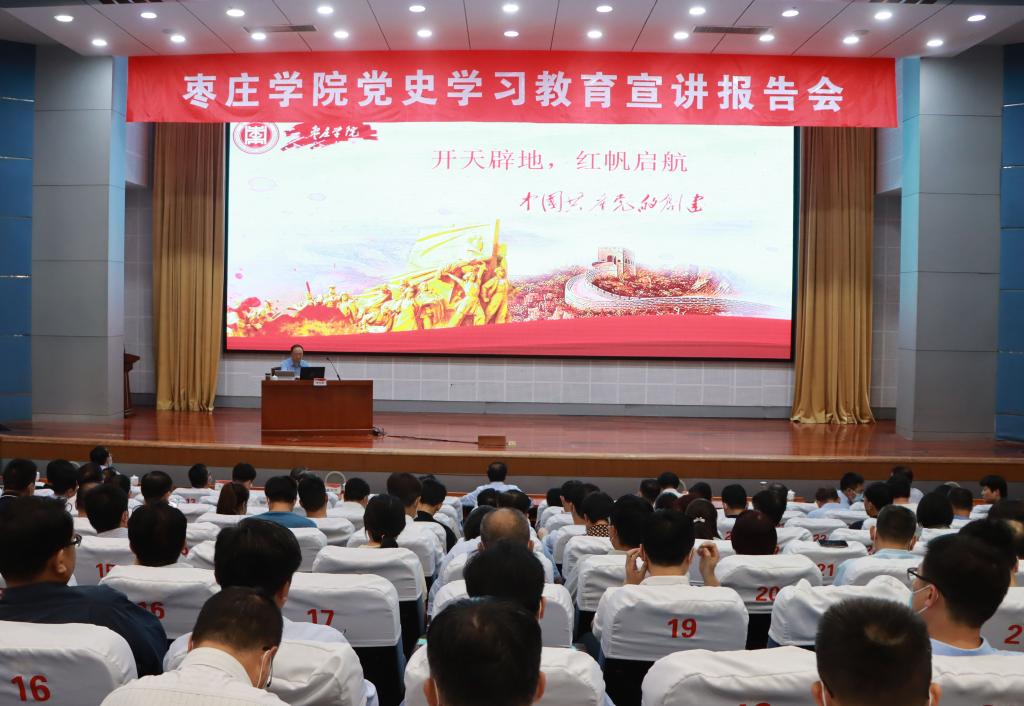 为进一步引导广大师生知史爱党、知史爱国,推动党史学习教育走深走实,6月4日下午,我校在综合楼学术报告厅举行党史学习教育宣讲报告会。校党委书记曹胜强以《开天辟地,红帆启航——中国共产党的成立》为题作报告,校领导李文喜、曾宪明、李目海、丰雷、安涛、孙正、张昌林、林勇出席报告会。学校副处级以上干部、永利yl23455全体教师、各二级学院师生代表共400余人到场聆听报告。