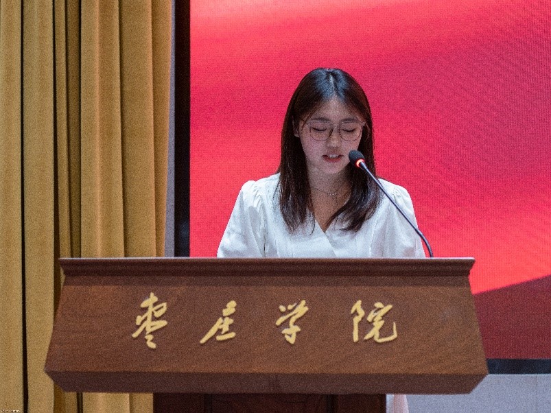 获奖学生代表2020级历史学专业芦琦同学,在发言中回顾了自己的四年大学生话,对学院和老师的精心培育表示感谢,并向同学们传授学习经验,鼓励大家在未来的学习生活中做到珍惜时间、主动学习、善于总结。