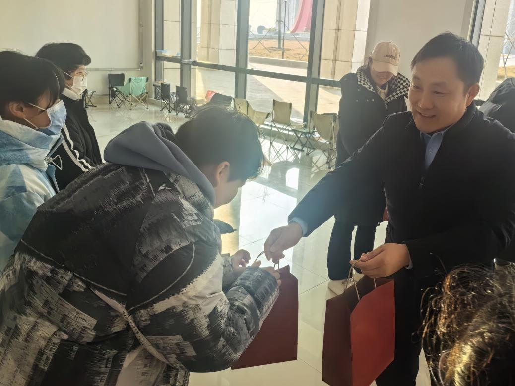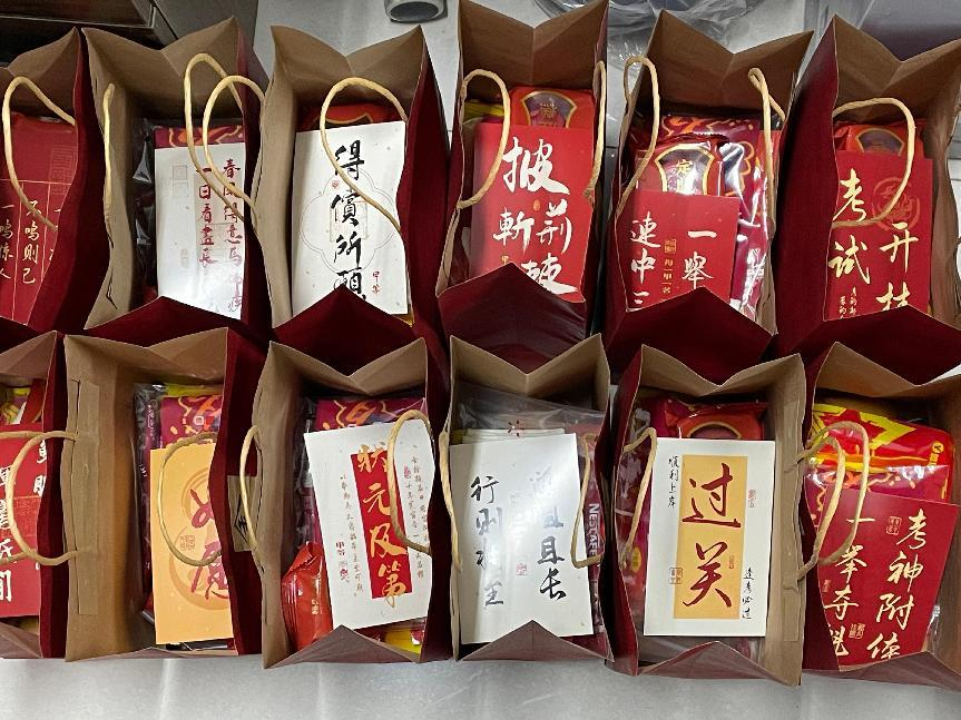 学院领导为我院学子送上暖宝宝、袜子、咖啡、定胜糕、贺卡等实用而又寓意吉祥的小礼物。每一件小礼物都蕴含着学院对考研学子深深的祝福与期盼,愿他们能够以坚定的决心与良好的状态,一“研”为定,成功上岸!随后,党委书记仝锡文详细询问学生们的备考情况,为他们送上祝福与鼓励,并叮嘱他们要注意身体,保持良好的学习状态;要调整心态,保持平稳的情绪状态;要相信自己,保持最佳的迎考状态。