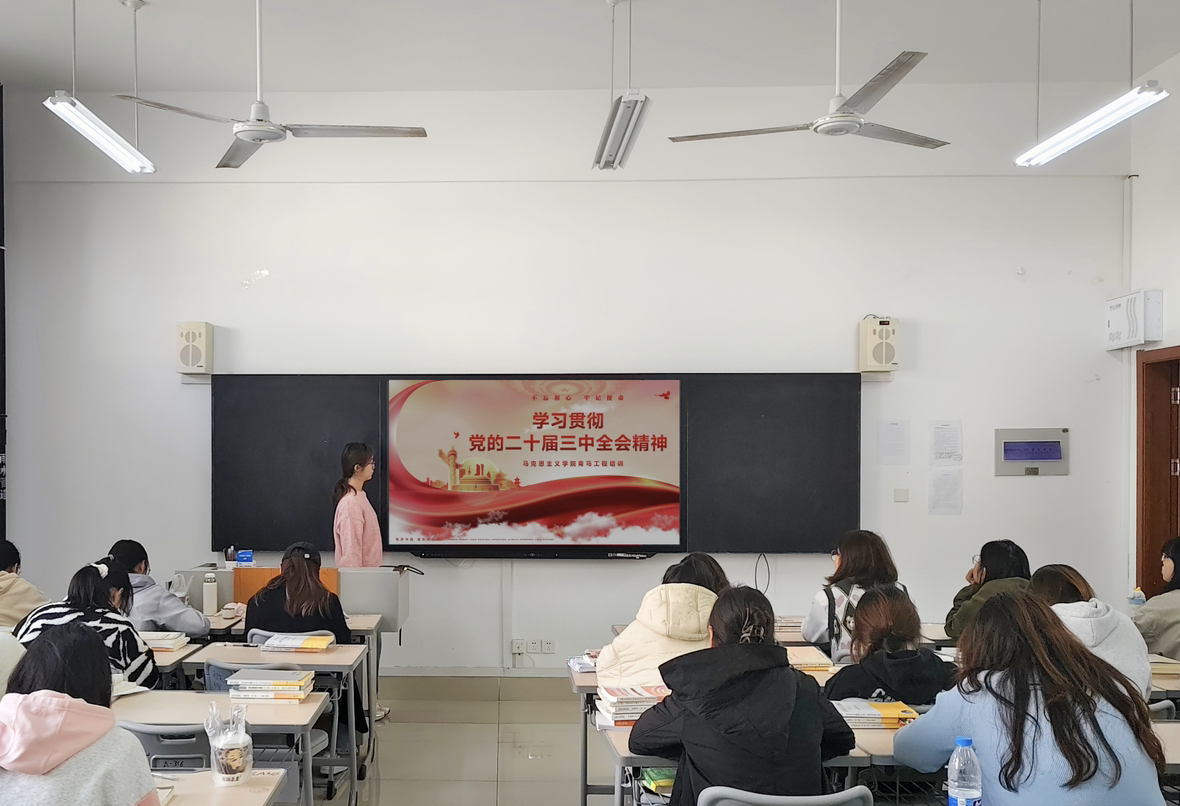 为培养信仰坚定、能力突出、素质优良、作风过硬的青年马克思主义者,进一步推动党的事业薪火相传,11月6日,永利yl23455在豁然楼A316室举办了主题为“学习贯彻党的二十届三中全会精神”的青马工程培训。