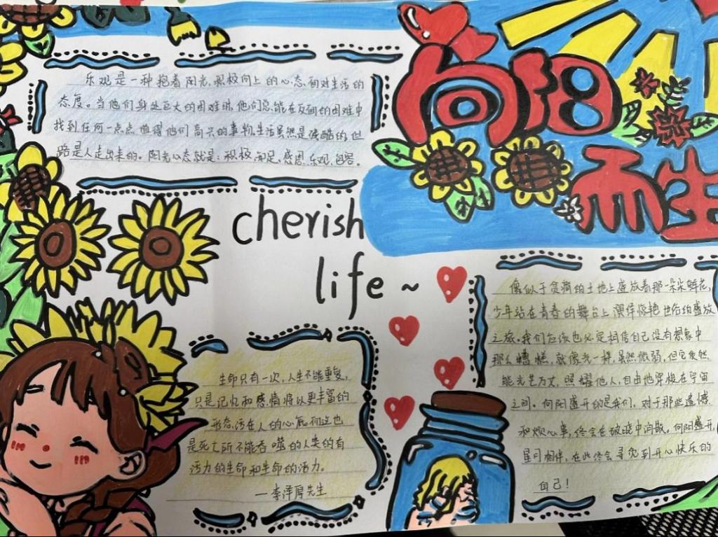 为宣传和普及生命健康知识,营造积极向上的生命健康教育氛围,引导学生树立科学的生命健康观,促进学生自我成长,引导学生表达对人生的期待和美好生活的向往,10月20日,我院举办“心怀希望,向阳而生”手抄报设计大赛。
