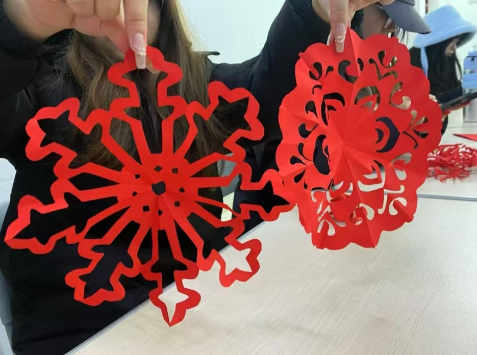 活动现场,颜色不同的彩纸在参与者手中不断变幻。在折纸老师的指导下,大家逐渐掌握了折纸技巧,同学们充分发挥想象力,从简单的纸鹤到复杂的花朵,每一个作品都蕴含着制作者对内心宁静的追求。活动搭建起了交流互动的桥梁,相互协作、交流心得,不同班级的同学相互分享技巧、互换创意,欢声笑语间情谊升温,和谐积极的现场氛围愈发浓厚。许多参与者表示,折纸过程中,他们的注意力完全集中在手中的纸张上,暂时忘却了生活的烦恼与压力,获得了难得的放松。